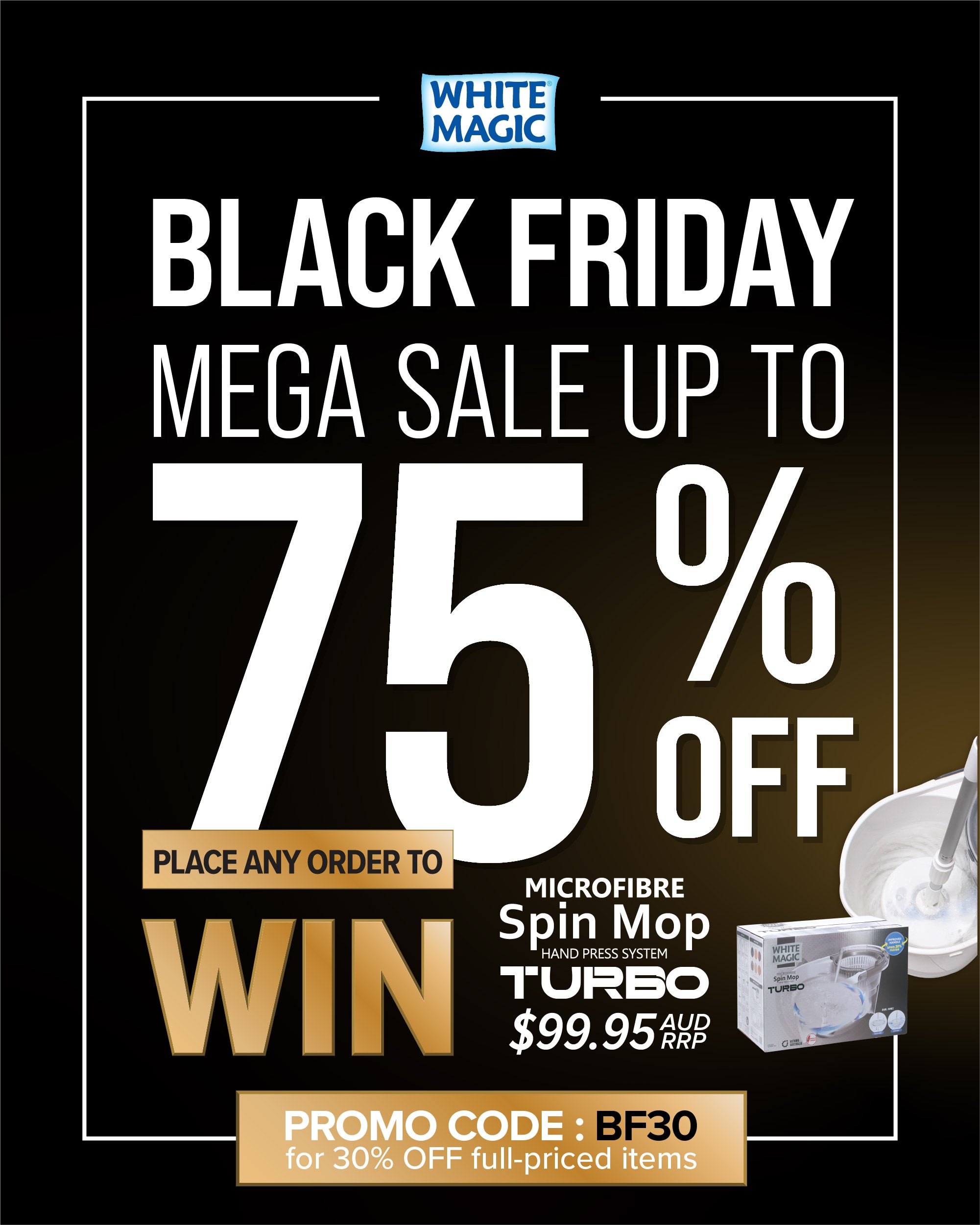 🛒 Order between 14–16 November for a chance to win 1 x White Magic Turbo Spin Mop worth RRP $99.95 AUD