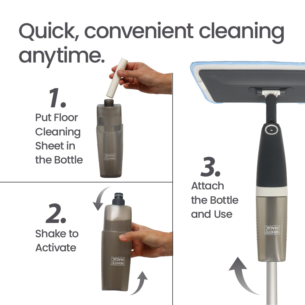 With a lightweight design and reusable components, the White Magic Spray Mop offers a sustainable and cost-effective cleaning solution. From everyday dusting to heavy-duty mopping, this 2-in-1 spray system delivers powerful, effortless cleaning for every home.